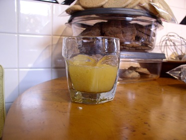Freeze in an empty gallon ice cream pail--the plastic kind with the handle. Take out and let thaw only to the point that it is slushy. Pour some in a glass and enjoy. YUM!