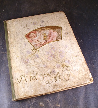 This vintage baby book is on loan to us from my sister, Sheila. It has the most beautiful and incredible illustrations. There is a handwritten inscription on the inside cover that says,