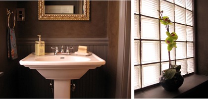 Powder room vignette. White tea and ginger soap from The Bath Hour.