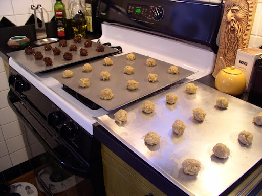 Cocoa-chocolate chip and oatmeal crisps ready to go in the oven